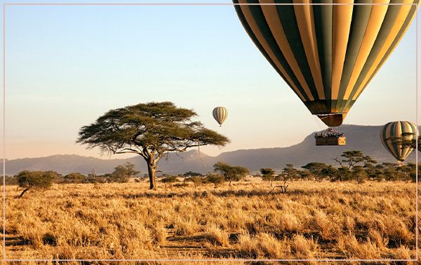 Neben der Tierwelt bietet die Serengeti auch außergewöhnliche Erlebnisse – etwa eine Heißluftballonfahrt bei Sonnenaufgang. Lautlos schwebt man über die Savanne und sieht Elefanten, Giraffen und Büffel aus der Vogelperspektive.